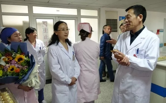 院长韩忠厚给奋战在一线的白衣天使送上鲜花,还为助产士送上了巧克力,祝愿她们的生活、工作甜美幸福!