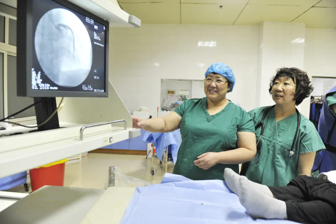 怎么办?要么冒着巨大的风险给患者做急诊手术,要么看着一条生命逝去。心内科主任马涛、心内二科主任田立国迅速对患者进行了评估,并与家属做了充分沟通,取得了家属的理解,果断决定开启导管室“一键启动”机制,13分钟导管室团队准备完毕,对朴奶奶实施急诊冠脉PCI手术。